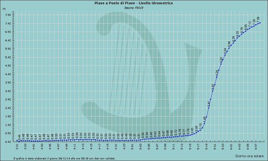 Idrometro Ponte di Piave: Dati in tempo reale - Fonte Ufficio Dighe