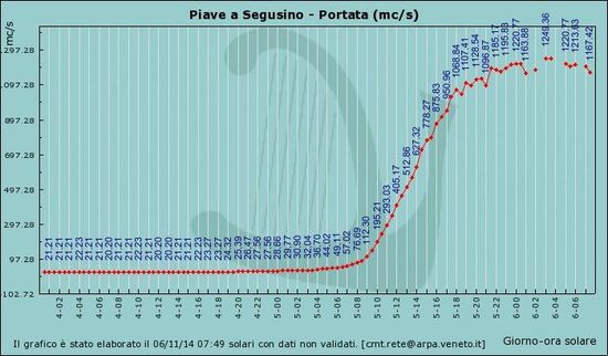 Una morbida con picco di 600 m^3 a Segusino segue l'evento di piena del 5-:-9 Novembre 2014