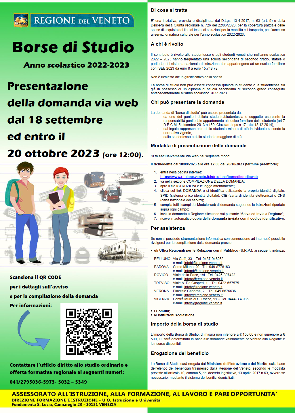 - hanno studenti residenti nella Regione Veneto, che frequentano, nell’anno 2022/2023: Istituzioni scolastiche: secondarie di II grado statali e paritarie;