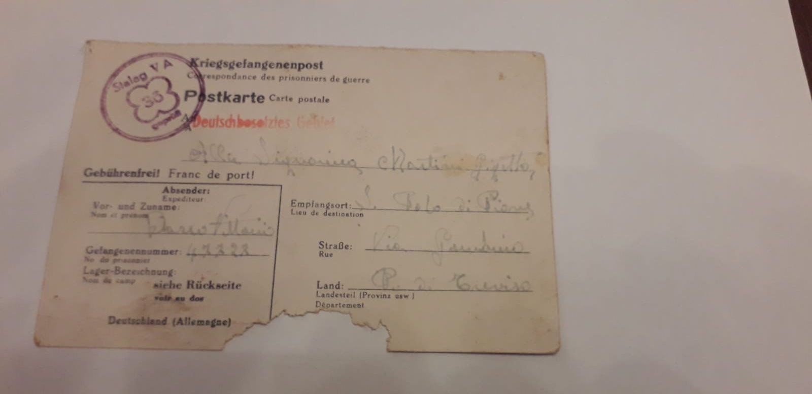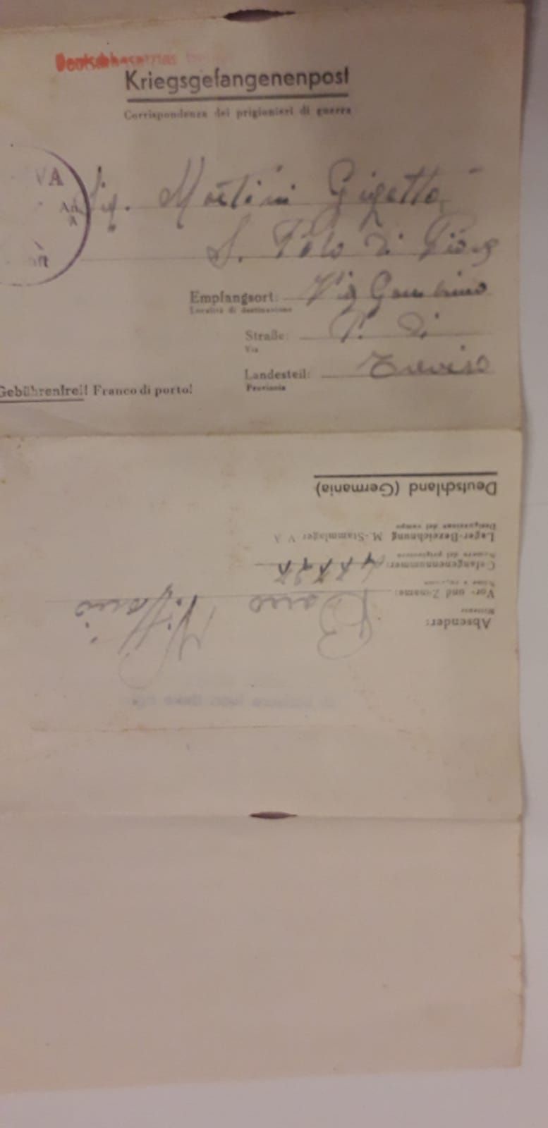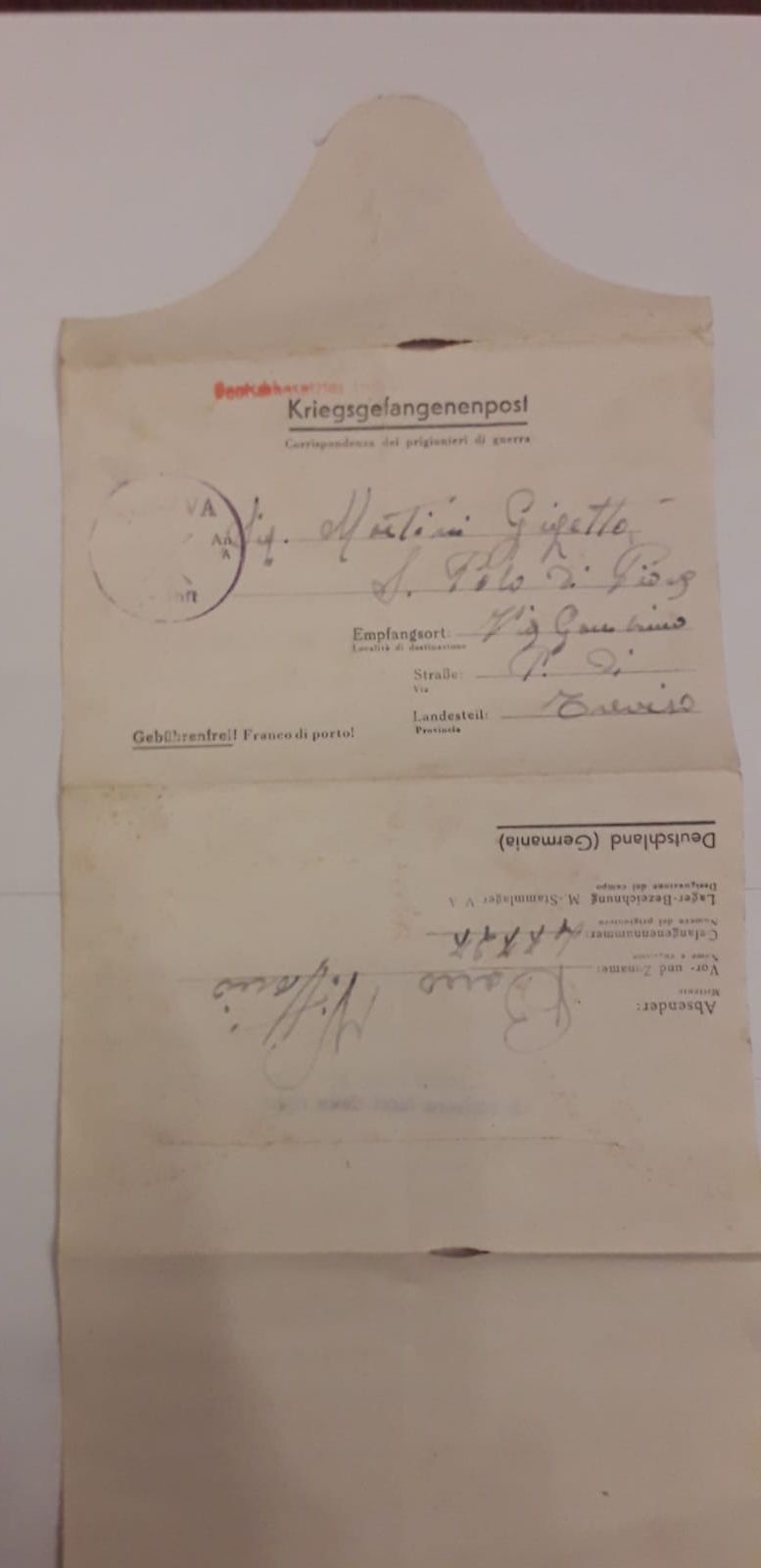 VOLUME MESSO A DISPOSIZIONE DA SARA CROSATO: il nonno ha sempre raccontato dei campi di lavoro in cui è stato prigioniero. Rientrò sfinito, affamato, a piedi, dal campo italiano William a Brunen, dopo la liberazione. Aveva con sé questo libretto
