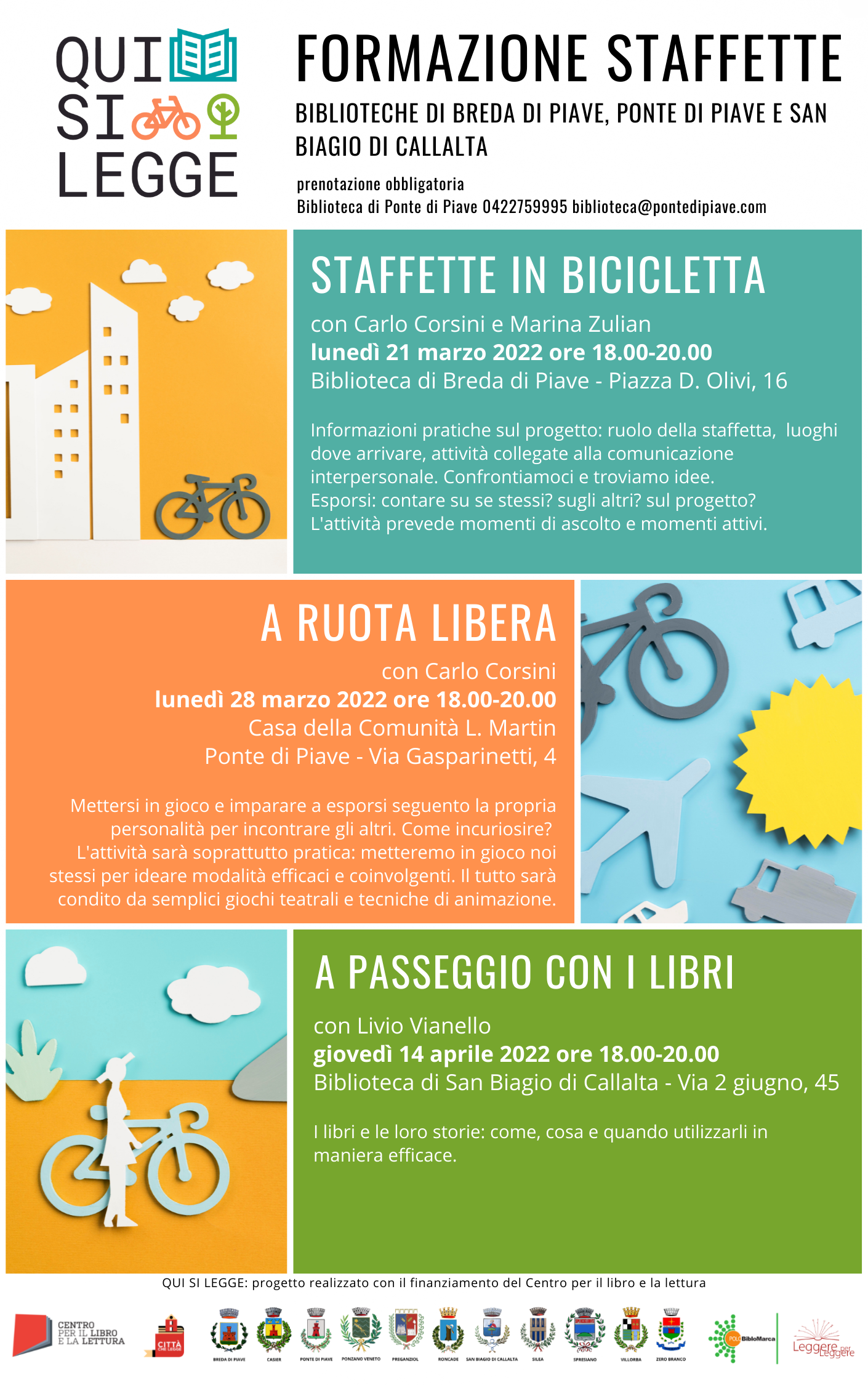 Per i volantari delle biblioteche di Breda di Piave, Ponte di Piave e San Biagio di Callata ci saranno tre incontri di formazione.