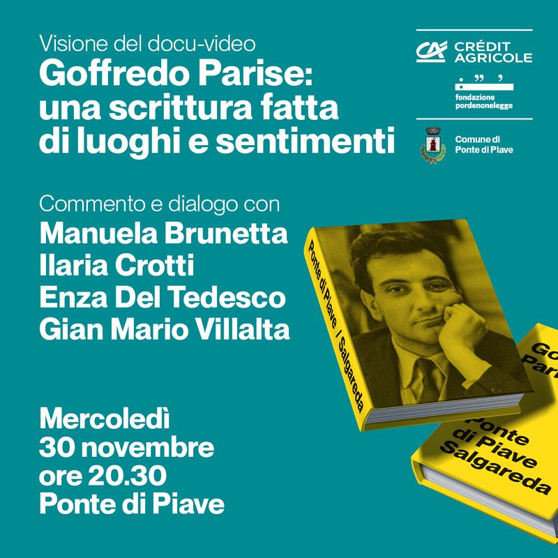 Nell’occasione sarà proiettato il docu video dedicato a Goffredo Parise, con le video interviste di Manuela Brunetta, Ilaria Crotti ed Enza Del Tedesco.